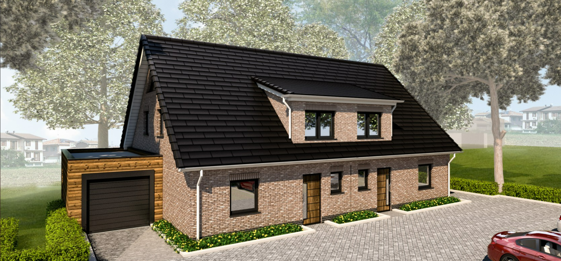 Mit diesem Doppelhaus schaffen wir nachhaltigen, modernen Wohnraum für Familien. Eine Hälfte ist bereits verkauft - bei Kauf können wir also direkt loslegen!