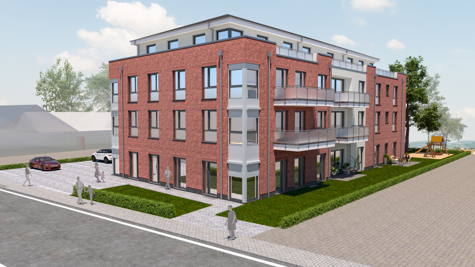 Ungefähr 15 Jahre ist die Fertigstellung des Projektes an der Bahnhofstraße 21 in Stuhr-Brinkum her. Das fertige Gebäude ist ein erfolgreiches Beispiel für Planung, die auf die Bedürfnisse der Menschen vor Ort eingeht: Das Erdgeschoss teilen sich zwei Arztpraxen und eine Gewerbeeinheit, in den drei Etagen darüber befinden sich Wohnungen unterschiedlicher Größe. Vom Single-Haushalt bis zur Familie finden alle Platz. Von der Tiefgarage aus gelangt man per Aufzug in die Wohnungen, ganz ohne Treppensteigen.